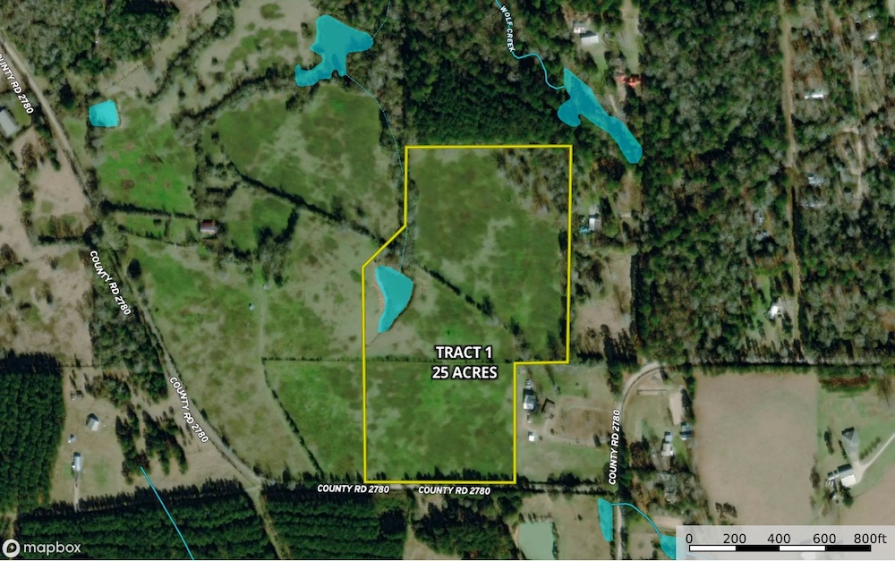 This 25± acre tract in Tyler County, located just outside of Woodville, offers the space, privacy, and setting many buyers are seeking as they plan a move from the city to the country. With over 600 feet of frontage on CR 2780 and only a few miles from town, the property provides convenient access without sacrificing a quiet country feel.