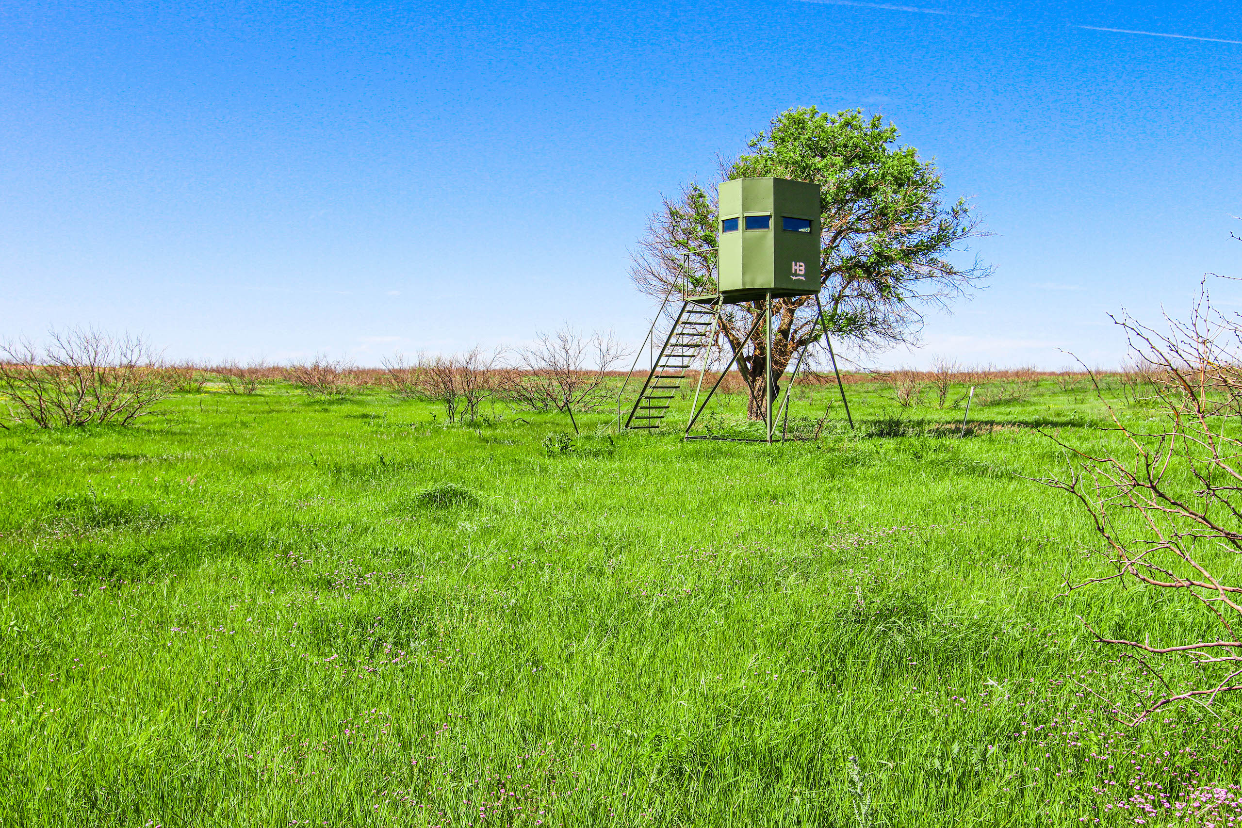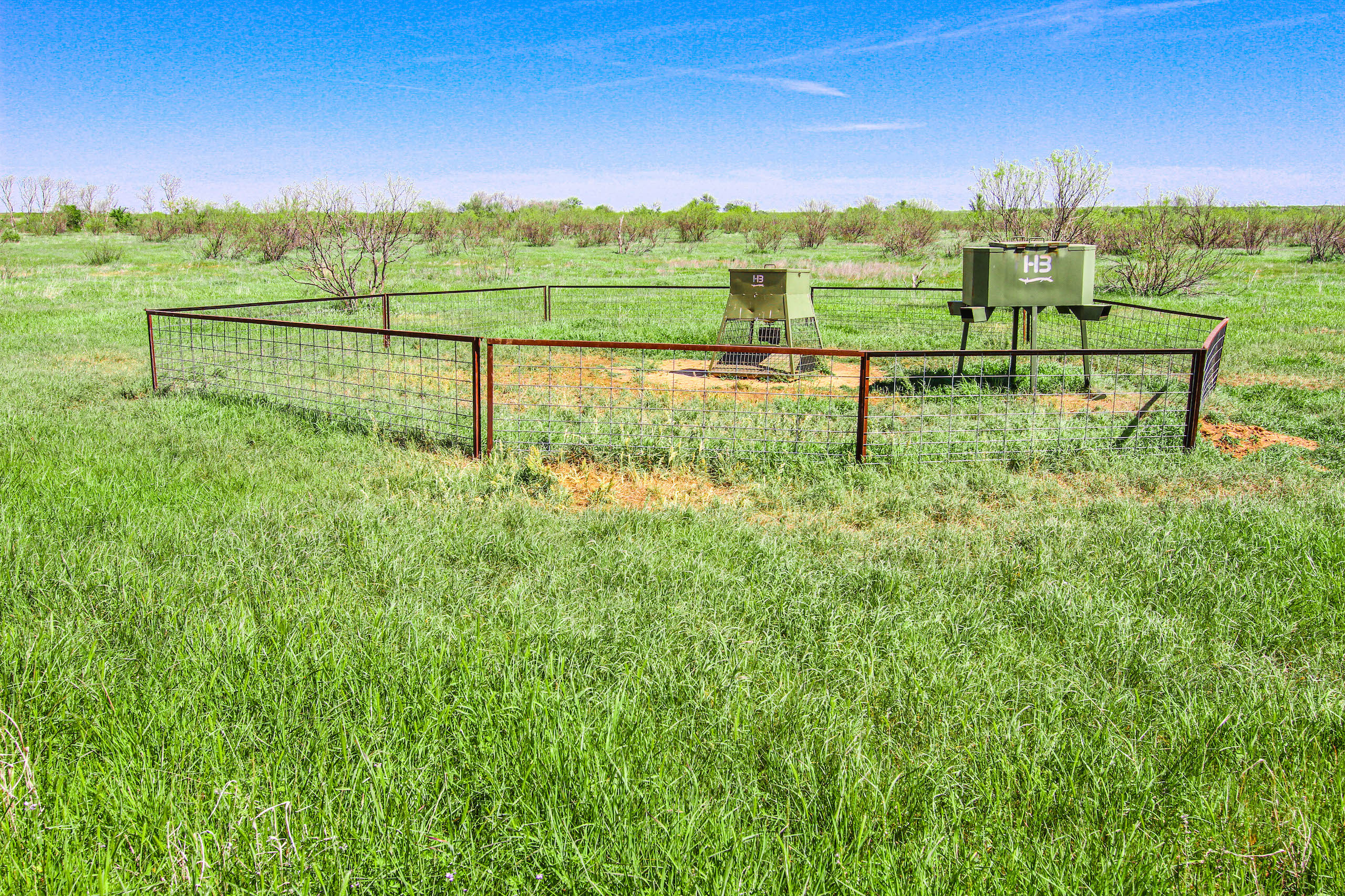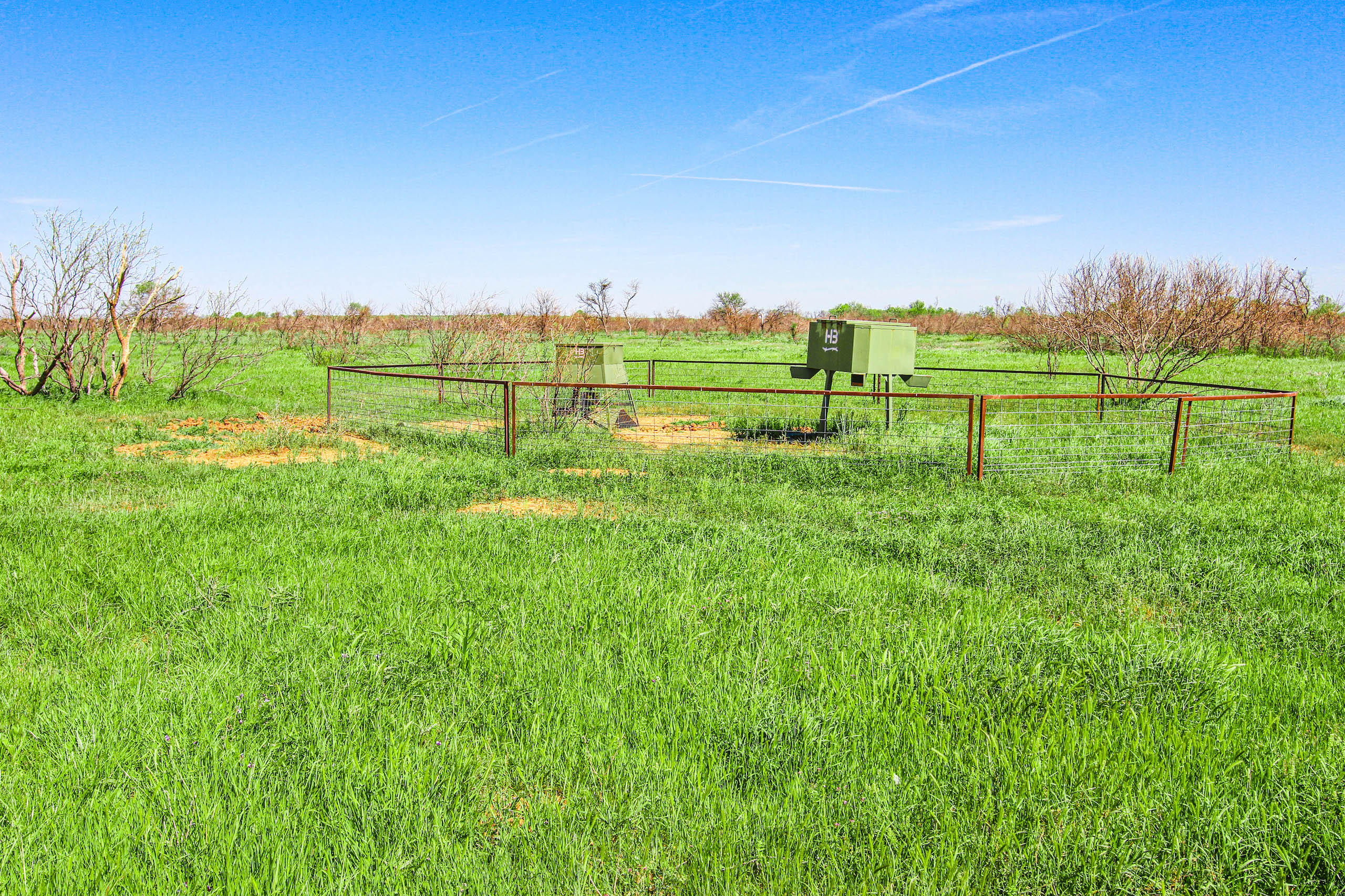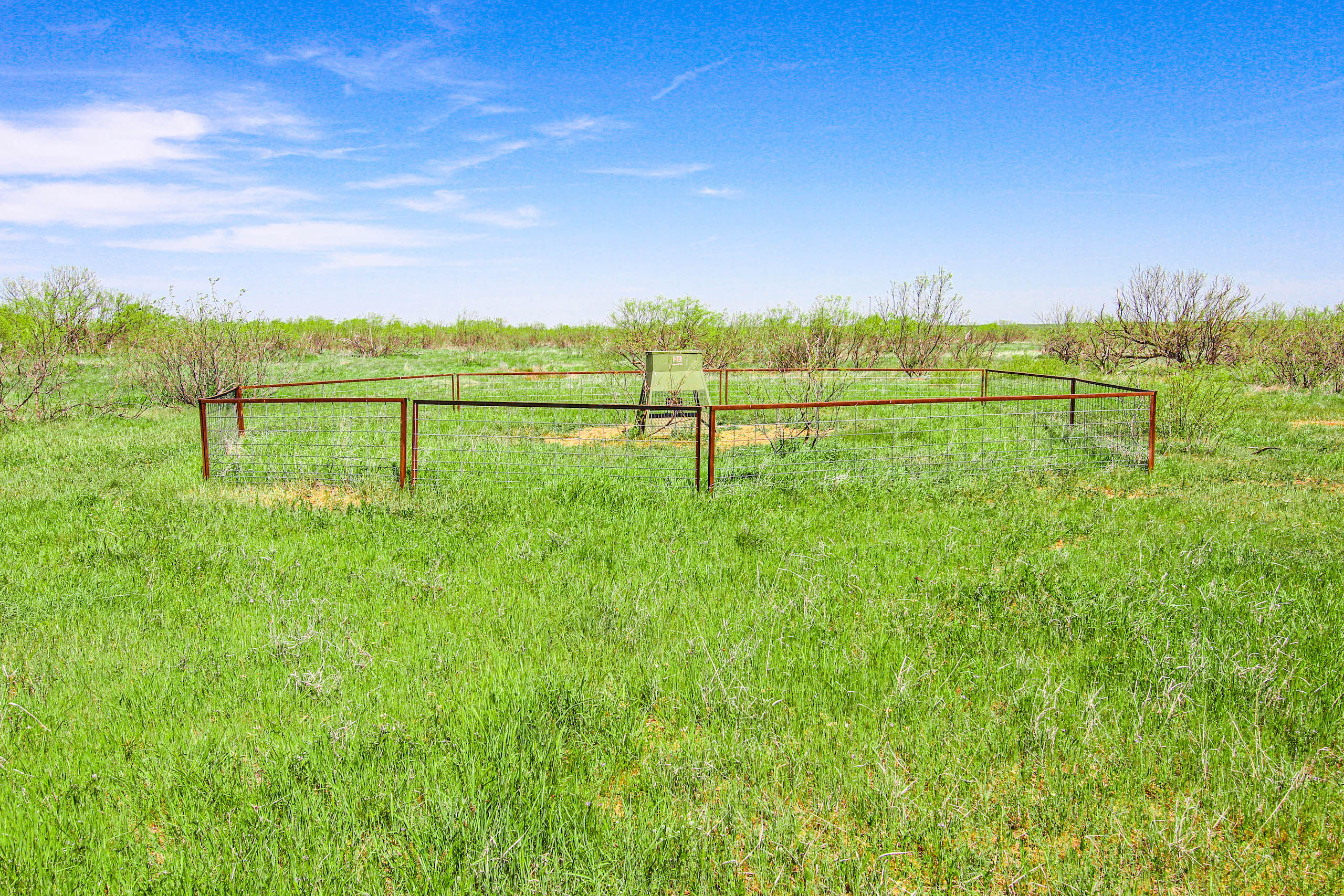 This place is big, with lots of cover. There is a very good series of trails and ranch roads that make it easy to get around……the south fence border trail is 3 miles long! The majority of the ranch is wooded, mostly with mesquite, with larger hardwood trees along the creek, providing lots of cover for the game animals in the area. Whitetail deer, turkey, pigs, and varmints all call this ranch home. The seller has managed this place over the past several years for exceptional deer hunting and has kept the hunting pressure very low, with only doe and management bucks taken during the last two hunting seasons. Plenty of dove and some quail, as well. There are 6 elevated HB hunting blinds, along with feeder pens and corn feeders that are included in the sale, making this place a great turn-key hunting ranch. Two protein feeders are also included. Just show up and hunt!