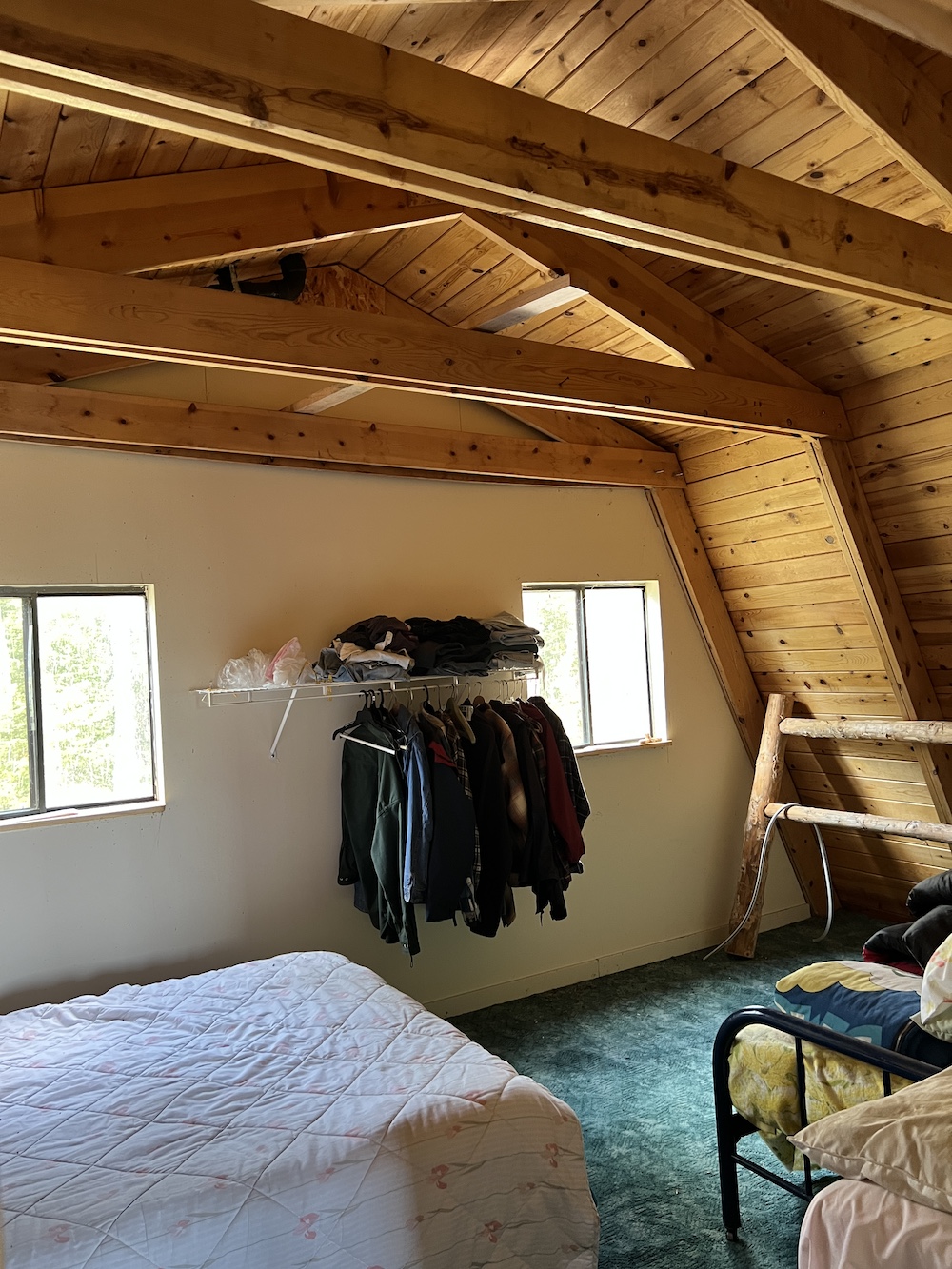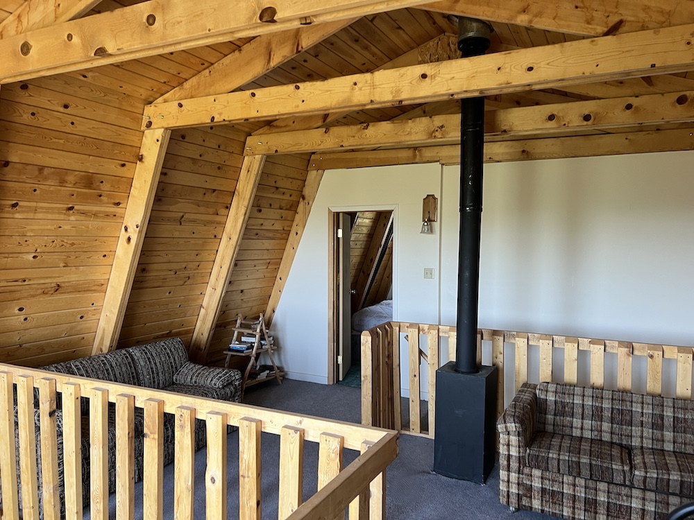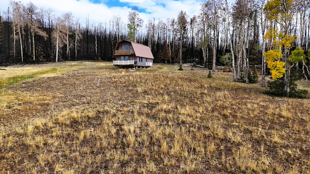 The cabin itself is 24’ x 36’, a 2-bedroom /1 bathroom with a loft, wood paneling, and a kitchen, dining area, and storage. The floor-to-ceiling wall of windows overlooks the property itself and provides plenty of natural light throughout. A deck and upstairs porch further add to the opportunities for wildlife viewing and enjoying looking over the mountain meadow, wildlife, and abundant trees. With the road access and multiple flat, clear areas, this parcel provides multiple additional cabin sites and would be well suited for subdividing with power lines running 1,400 feet from the Western border.
