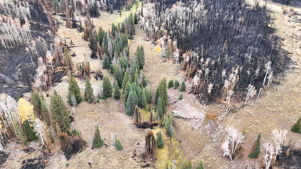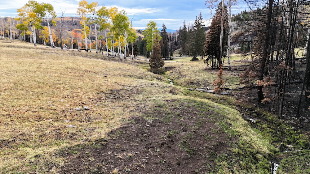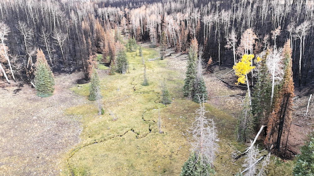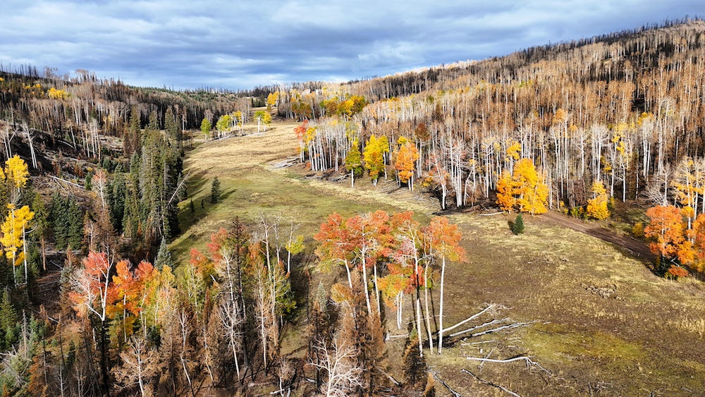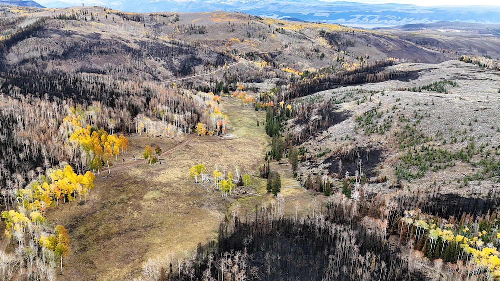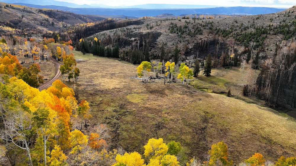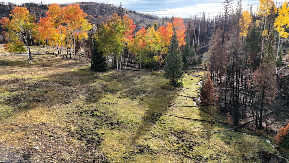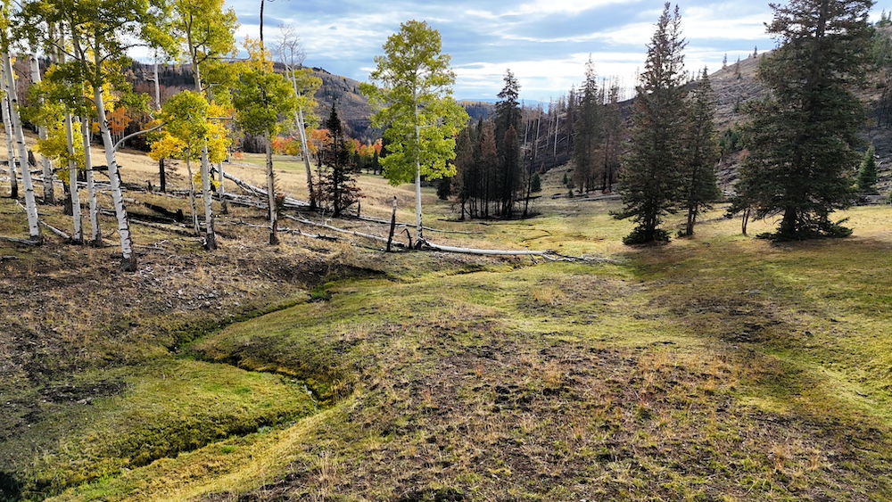 This square mile of high-elevation meadows is outlined with aspens and pines and full of wildlife. The same owners have been well managing this property for decades, taking time to remove stagnant stands of pines and encourage new growth, aspens, and abundant meadows. Elk, mule deer, and a myriad of other species are present across the property, using the meadows, old-growth forests, and abundant water to their advantage. Several small creeks flow through the property, providing over 1.5 miles of running water.