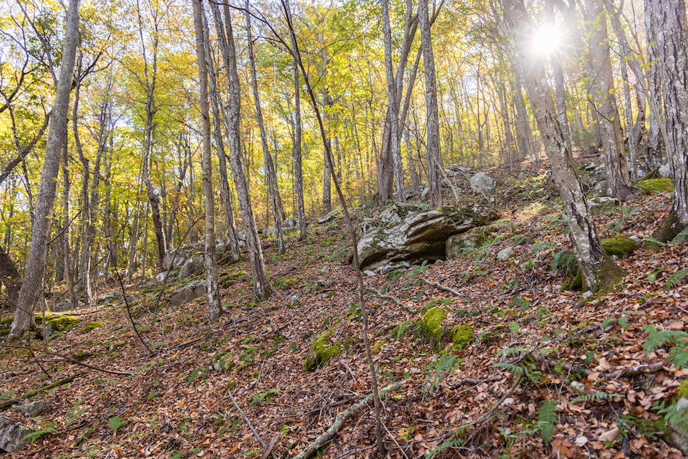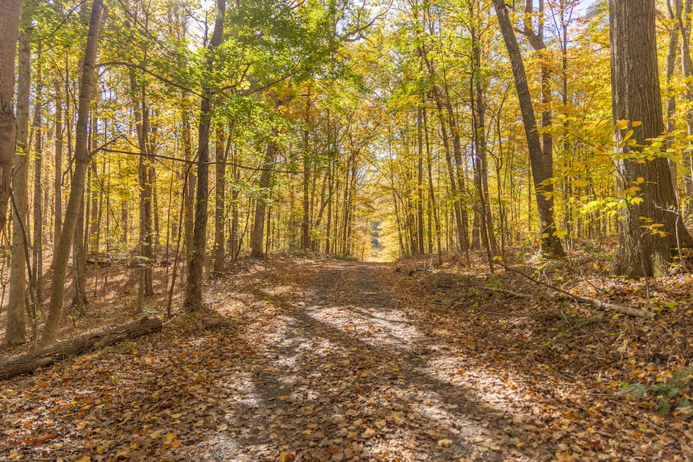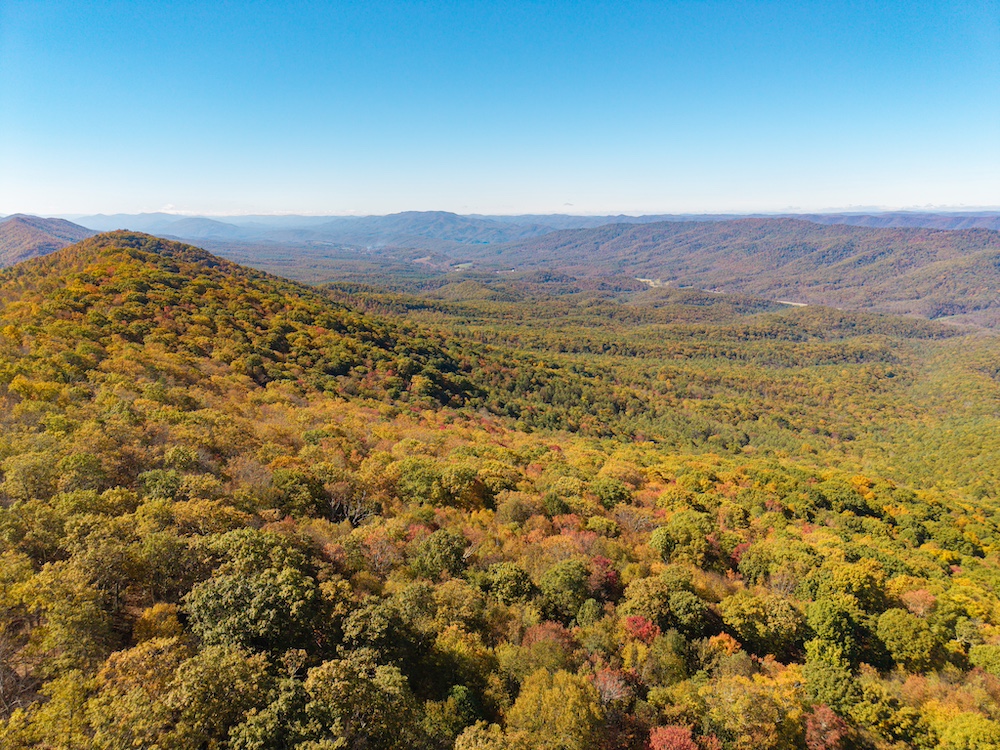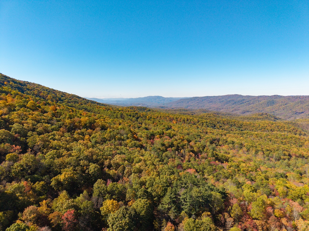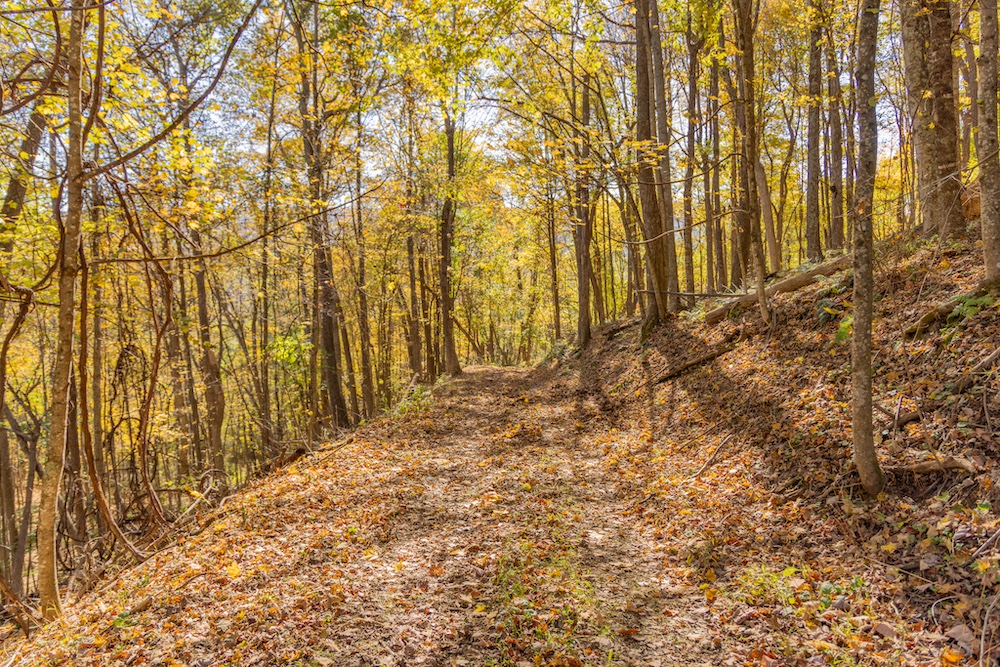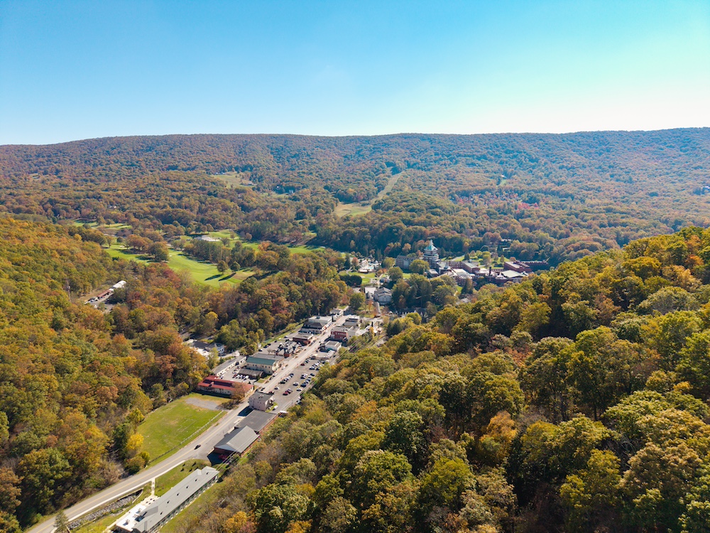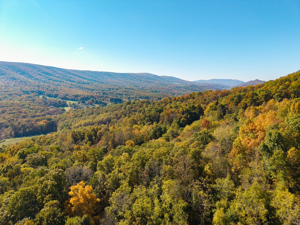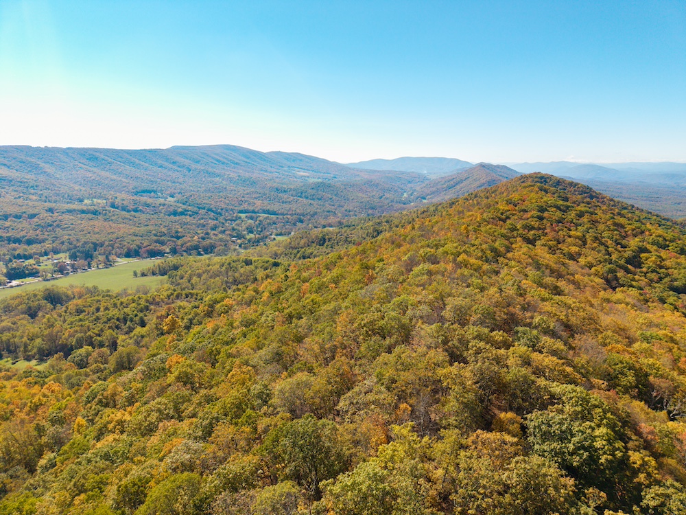 Miles of well-established roads and trails wind through mature hardwood forests, providing excellent access throughout the property for hiking, horseback riding, or ATV adventures. The mountain peak offers commanding 360-degree views of the surrounding valleys, the Allegheny Mountains, and the historic Omni Homestead Resort below — an extraordinary vantage point rarely available.