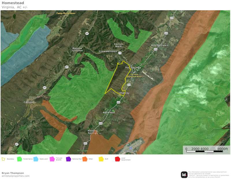 Whether envisioned as a private mountain estate, recreational retreat, or investment, this exceptional property offers a rare opportunity to own one of the region’s most scenic and accessible large tracts — where panoramic views, privacy, and proximity to the legendary Omni Homestead Resort come together in perfect harmony.