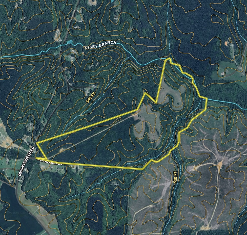 Along the northern and eastern edges, you’ll find hardwood thickets, Frisby Branch Creek, and a natural spring. These features provide a steady water source and create natural travel corridors, allowing deer and turkey to move between their bedding and feeding areas. With its mix of open ground, timber, and creek bottoms, this property has the kind of holding power that keeps wildlife on your ground year-round.