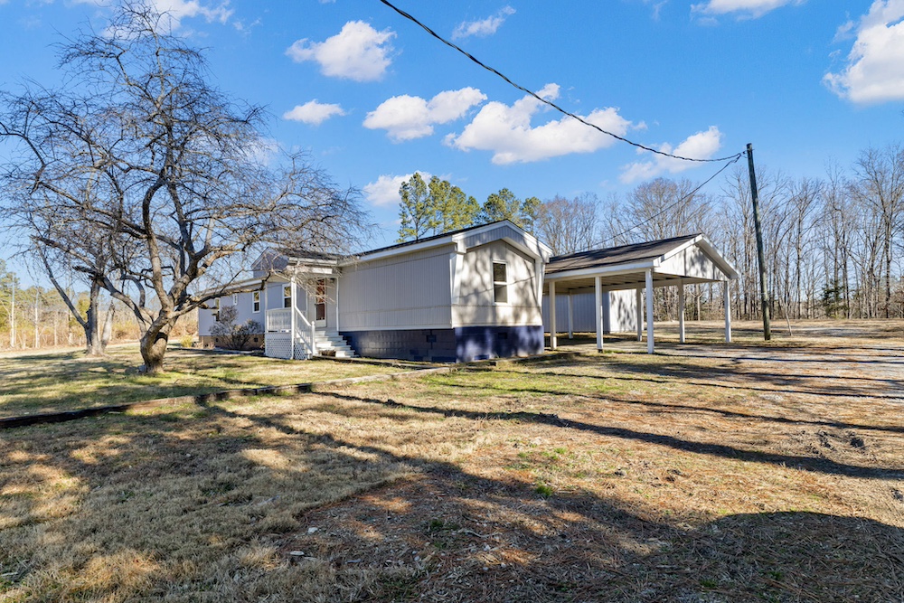This fully renovated 2-bedroom, 2-bath home offers modern comfort in a peaceful setting, having been completely taken down to the studs and thoughtfully updated inside and out. The refreshed interior features contemporary finishes and updated appliances, making this home truly move-in ready. Originally a 1980s single-wide, the home is now situated on a permanent foundation and blends affordability with long-term stability. Step outside to enjoy a brand-new, spacious back deck—perfect for relaxing, entertaining, or taking in the views of the surrounding landscape. The wide, open yard backs to mature hardwoods, providing privacy and a natural backdrop rarely found at this price point. Additional features include a carport and a separate storage shed for added convenience and functionality. Set on a generous ±2-acre lot, there’s plenty of room for outdoor living, gardening, or simply enjoying the quiet country atmosphere. Conveniently located just 6.4 miles from the Town of South Hill and under a 20-minute drive to Lake Gaston, this property offers a great balance of privacy and accessibility.