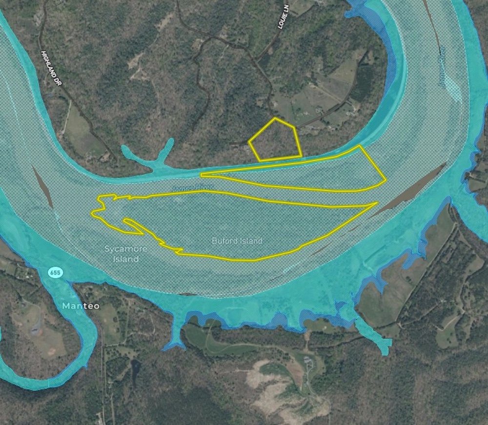 A rare opportunity to own a truly exceptional property along the James River, offering nearly 3 miles of riverfrontage according to county GIS records. Spanning approximately 125 acres, this unique tract includes an 80+/- acre PRIVATE ISLAND, along with Class II soils currently in hay production, abundant recreational opportunities, and breathtaking river and distant mountain views. A potential build site with infrastructure already in place along the bluff allows for your dream retreat, while an interior trail network provides easy access throughout the island and property. The property consists of 4 parcels, allowing the ability to sell off undesired tracts at any point in the future.